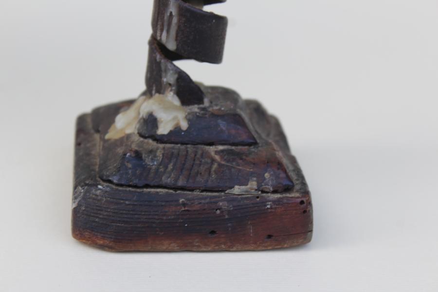RARE SQUARE BASE IRON TWIST CANDLESTICK.
