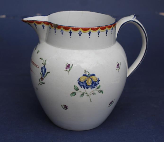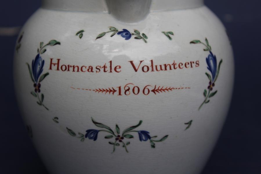 Important creamware jug, attributed to Rainforth & Co, Yorkshire, used in the recruitment of the Horncastle Volunteers 1806.
