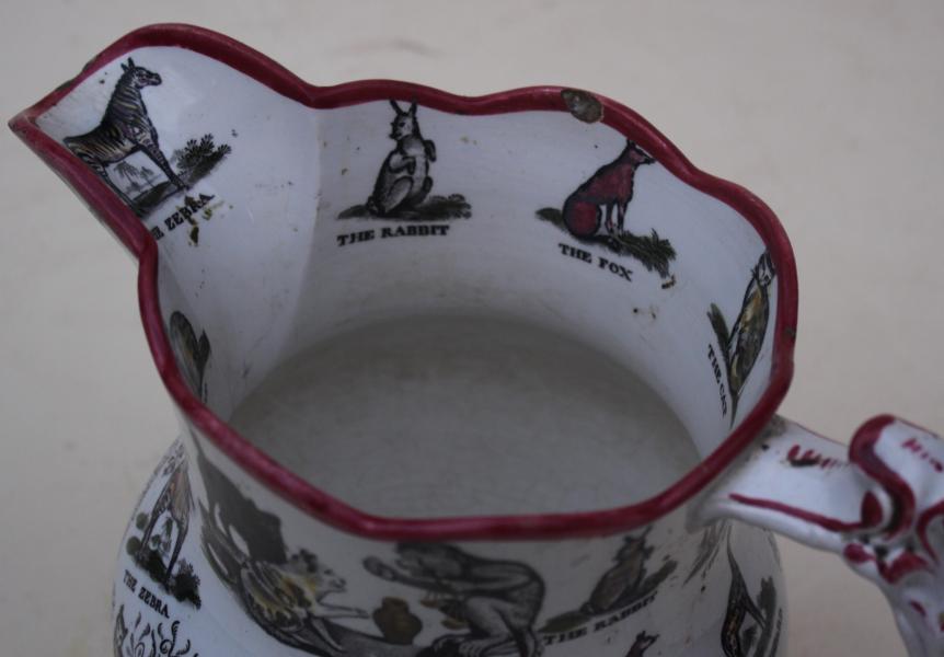 An interesting dated (1835) jug, Although the named animals are recorded earlier on pots circa 1820 it is an early date for the three round prints CORNFIELD, FARMYARD & SUMMER AND I'm surprised that they were still calling a Giraffe a Cameleopard at this date. Obviously copying an old print. Probably made in the North East.