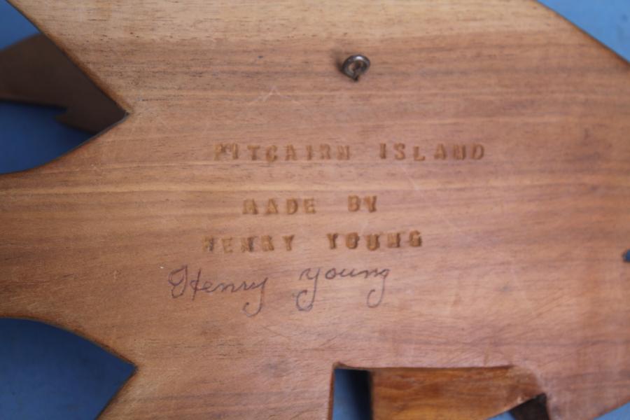 Stamped on back PITCAIRN ISLAND MADE BY HENRY YOUNG and signed in ink.