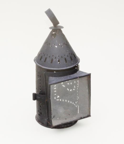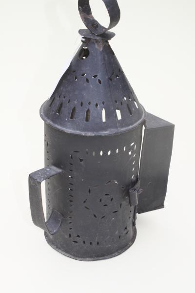 Mid 19th century French sheet iron / tin lantern. Large single window with pierced back and sides.