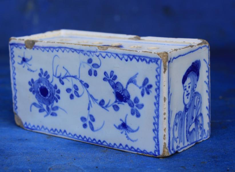 Very unusual mid 18th century flower brick with painted portrait ends .