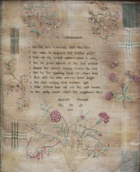 Signed ELIZABETH FAIRCLOTH and dated May the 24 1773.