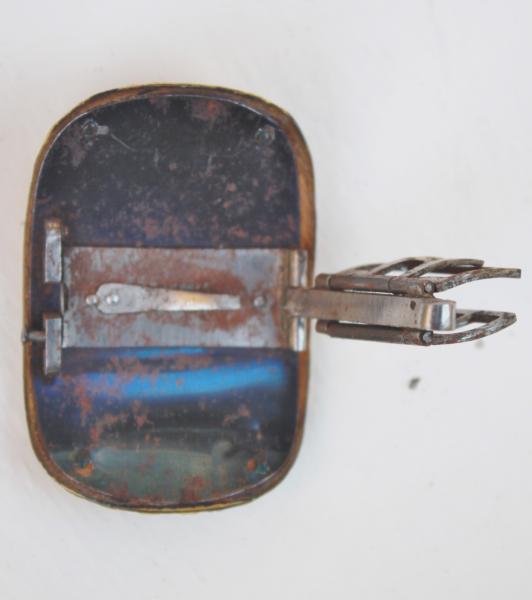 The center is made of a black leather. The buckle has a gun metal back. The fastening is sprung and is released with a push button.