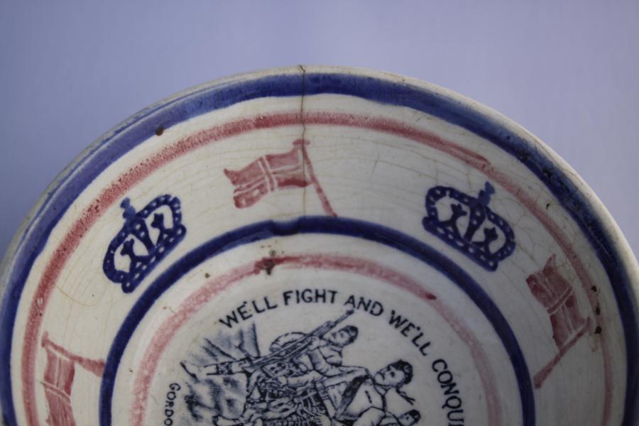 Scottish Motto spongeware bowl. Transfer printed verse with deep sponge border.