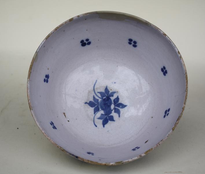 A classic late 17th or early 18th century English Delft Bowl, with straight sides.