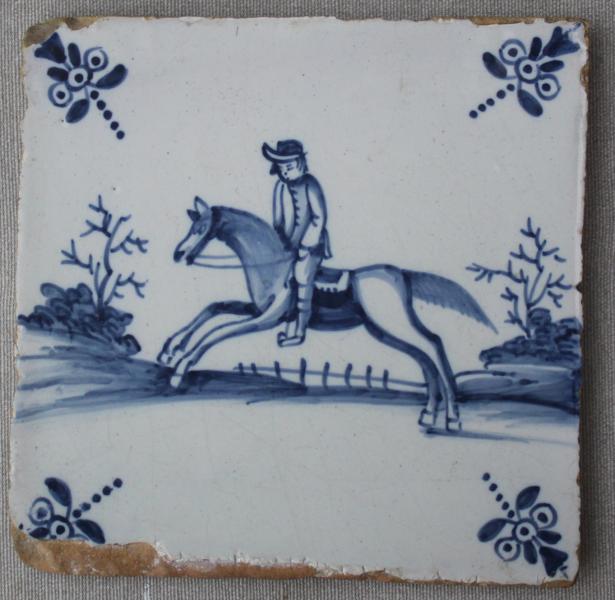 A rare mid 18th Century deft tile from, a continues hunting scene.