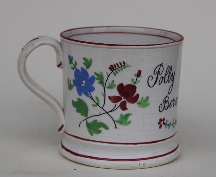 Polly was born as her mug says on 23.12.1855 in Holbeck a suburb of Leeds, but this style of decoration I would not usually associate with this great potting city.
