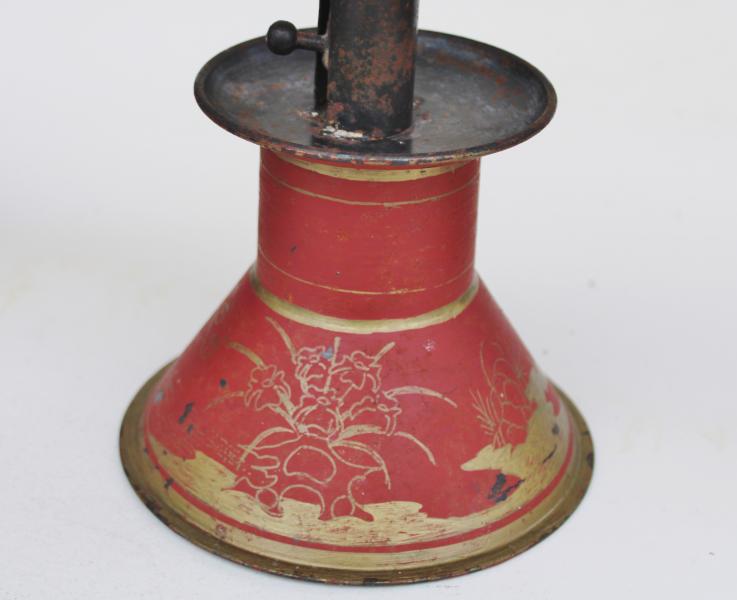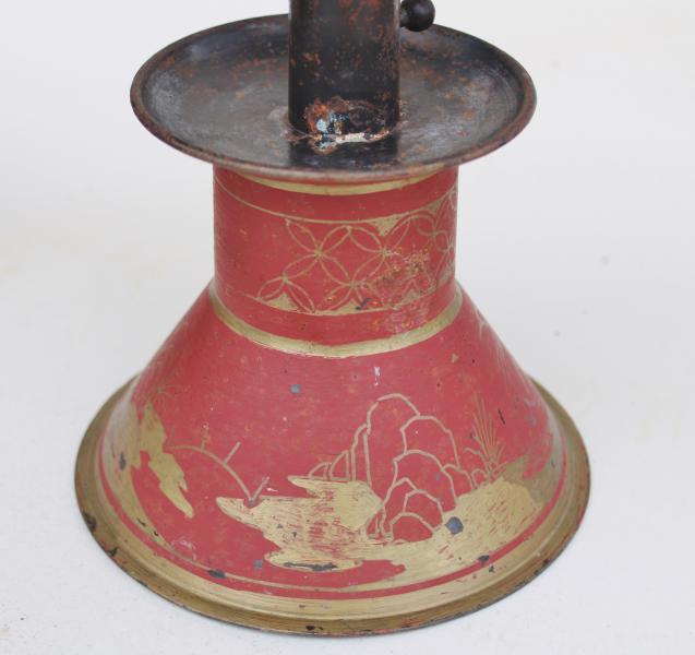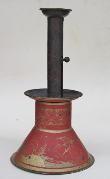 | TIN CANDLESTICK with ORINGINAL DECORATION. |