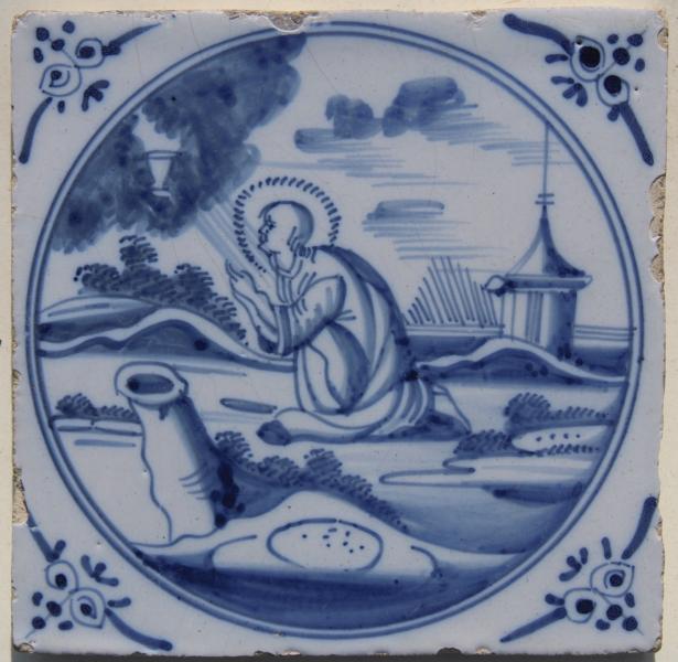 Uncommon subject on a Delft tile. circa 1750